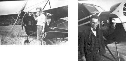 Curly Bill Johnson with his Aeronca C-3 Collegian on the left, and with his Stinson Junior in 1932.