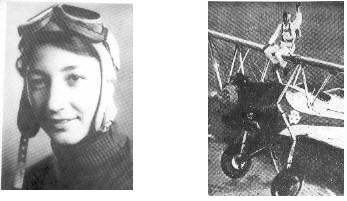 Jessie Woods, and on the top wing of the Travel Air flown by her husband.