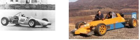 On the left is Jim Abe of Cumberland in his Formula Ford in 1970, and Abe in his Formula Continental in 1998.