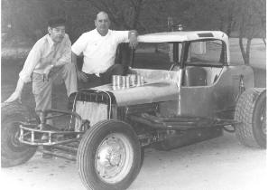John ‘J-4’ Twigg on the left, shown with Carl Valentine, is pictured with one of his racing cars.