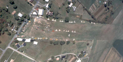 Overhead view of a Sunday Fly-In at Mexico Farms