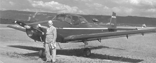 Dr. Royce Hodges, well known Cumberland physician, in front of his Ryan Navion.