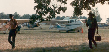 On the left is Joe Long, with Dave Long, as they walk away from the Republic Seabee after their arrival at the Oshkosh Air Show.