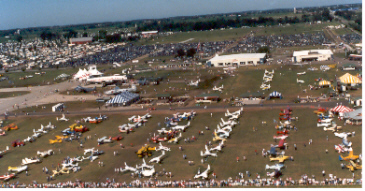 In open fields to the west were located hundreds of campers in mobile homes, vans, and make-shift tents, some of whom had arrived several days before the show began in order to gain the choice up-close sites. An aerial view of the area revealed rows and rows of parked aircraft and a monstrous maze of parked automobiles, as well as fields of campers. Also to the west is located the Experimental Aircraft Association Museum, a veritable collection of aircraft beginning with the 1903 Wright Flyer and progressively displaying aircraft up to modern times. Adjacent to the museum is a grass runway and the home of the Pioneer Airport, with old time hangars housing many flyable aged aircraft with such names as Pitcairn and Pietenpol. To fully appreciate the museum and Pioneer Airport one would need to spend a full day taking in those sights.