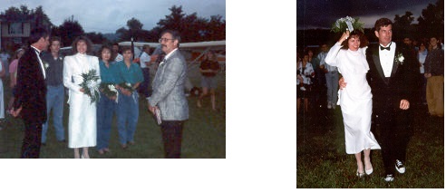 Two photos from the Teeter wedding. Note the aircraft used in the ceremony in the background, and on the right the happy couple, with Greg’s tennis shoes as part of his formal attire.