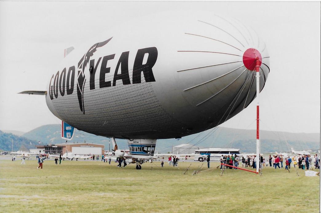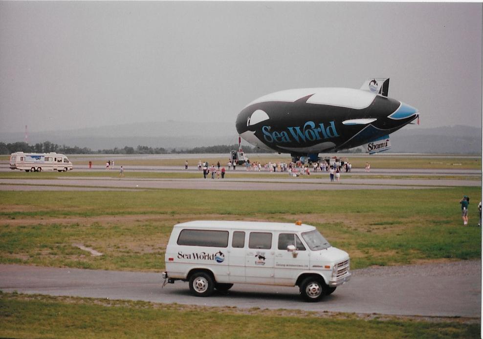 Blimp Visits to CBE The photographs below show three visits by blimps – the Goodyear Blimp in May 1990 and in May 1992, and the Sea World Blimp in September 1992. Click on a picture below to see larger images. Back to Photo Gallery