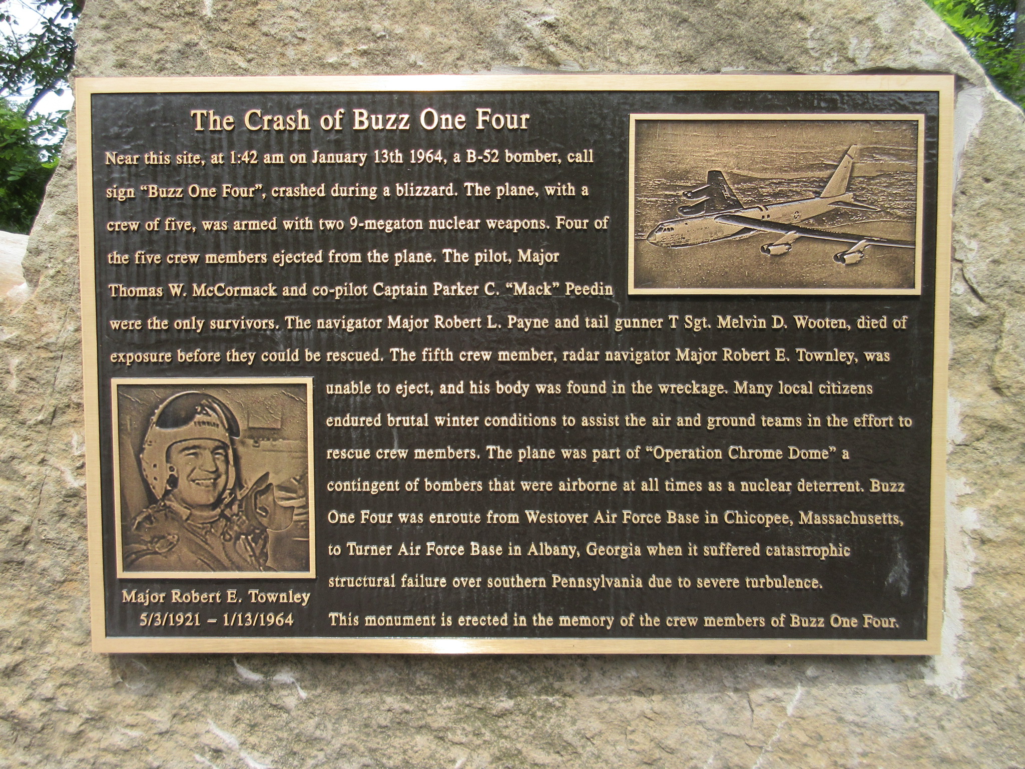 Buzz One Four is the call sign for a B-52 that crashed in eastern Garrett County on 13 January 1964. In the years since, several memorials have been established honoring the crew.