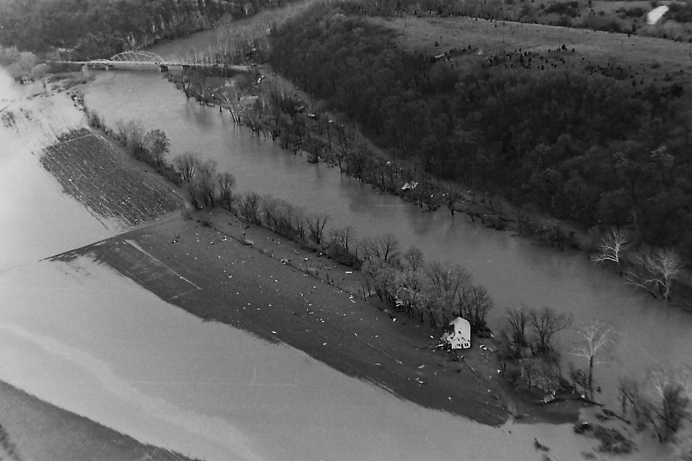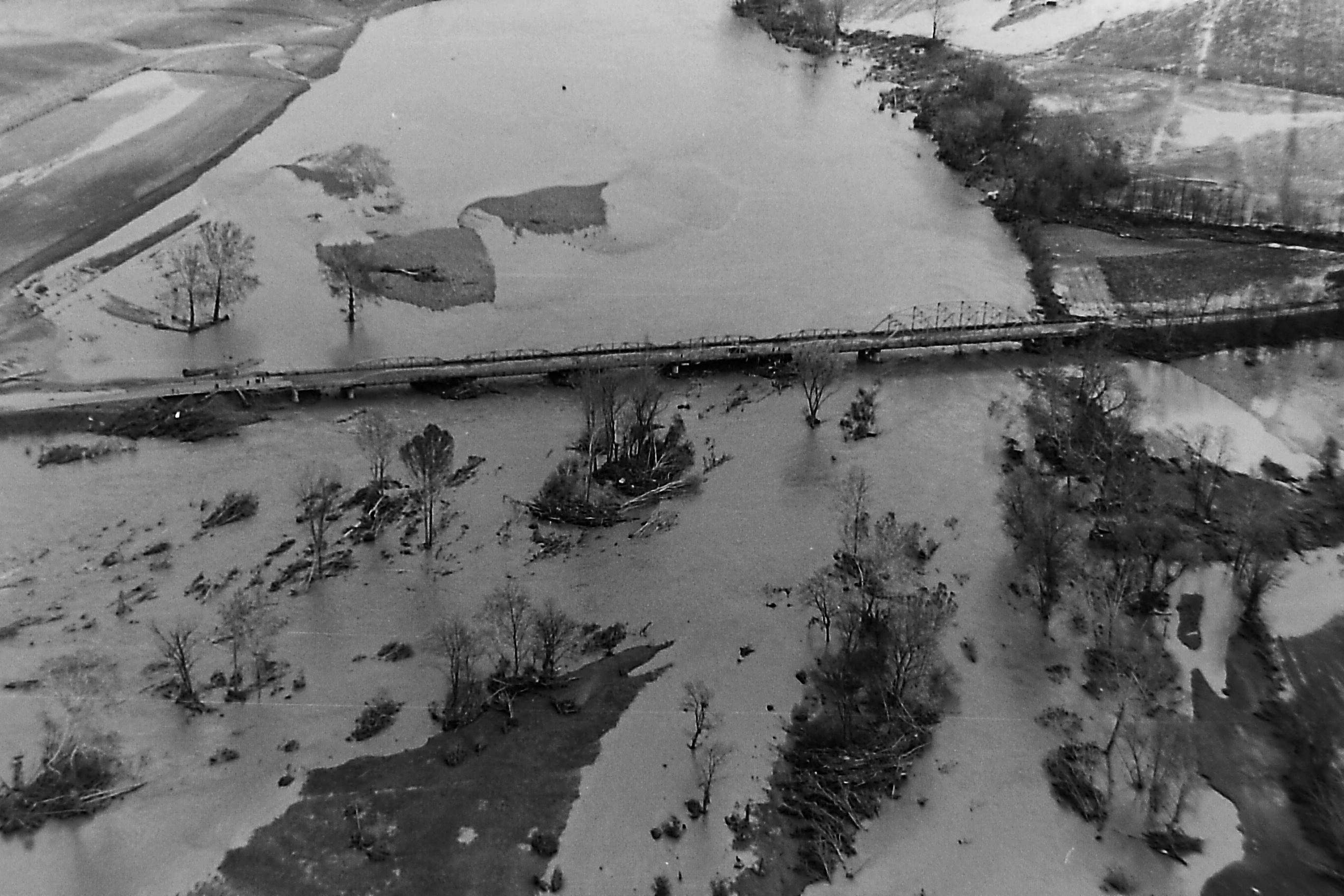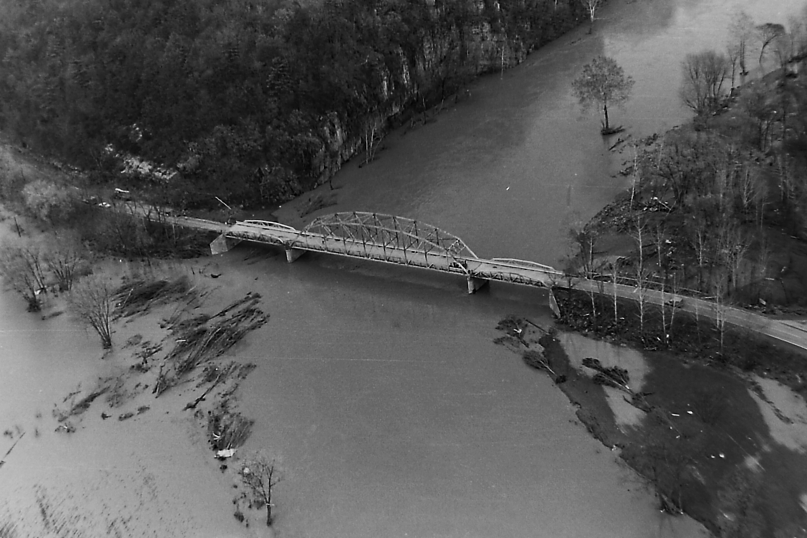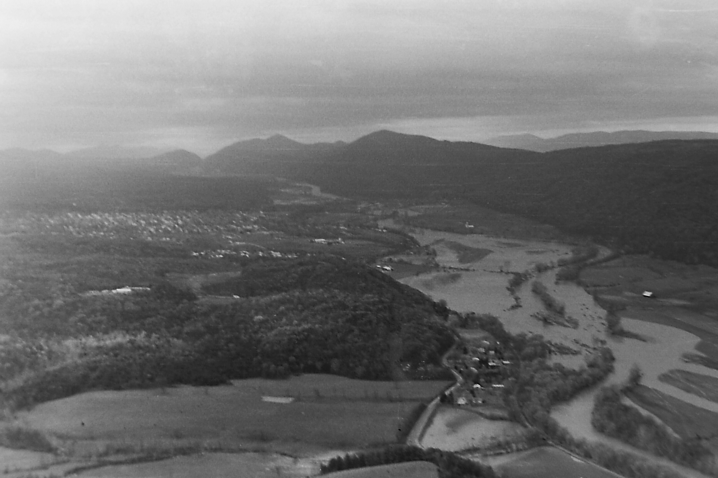 The photographs below were taken in early November 1985, shortly after what later became known as the “Election Day Flood.” Following nearly a week of rain, among the hardest hit areas were those along the South Branch of the Potomac River. These photographs show some of that flooding, between the West Virginia towns of Springfield and Romney.