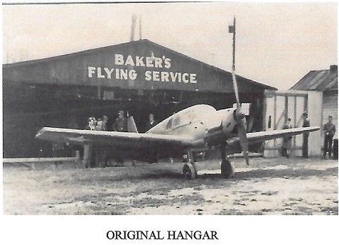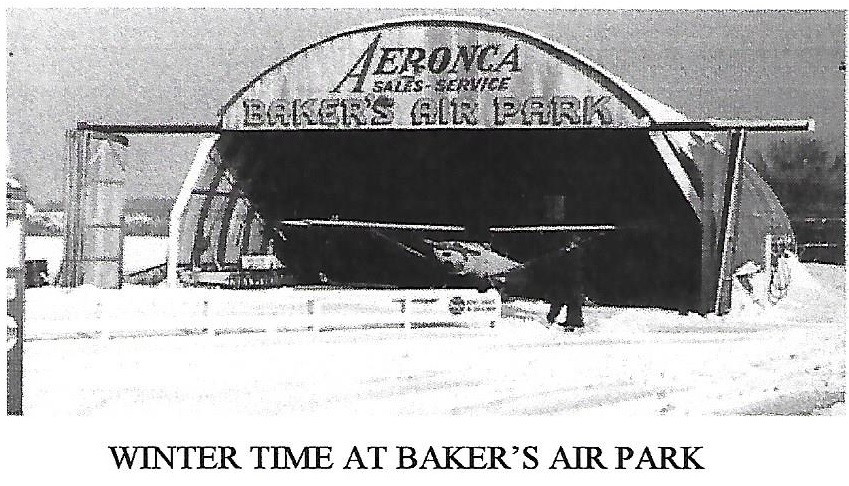 By mid-summer of 1946 these had been replaced by a 40′ by 80′ Quonset metal hangar and a smaller Quonset for the office. Fuel tanks were installed between the two buildings, one providing aviation fuel, and two others to service the automobile traffic along the well traveled US Route 50. At this time, Dave renamed his facility Baker’s Air Park.